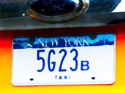 ![]() Plaque d'immatriculation d'un taxi new-yorkais. | ![]() Statue de la Liberté, New Jersey. |